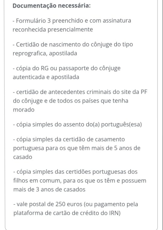 Não houve mudança nos documentos para processos pelo casamento. Simplificou a comprovação de ligação com a comunidade, e os 32 anos de casado são suficientes para comprovar a ligação.