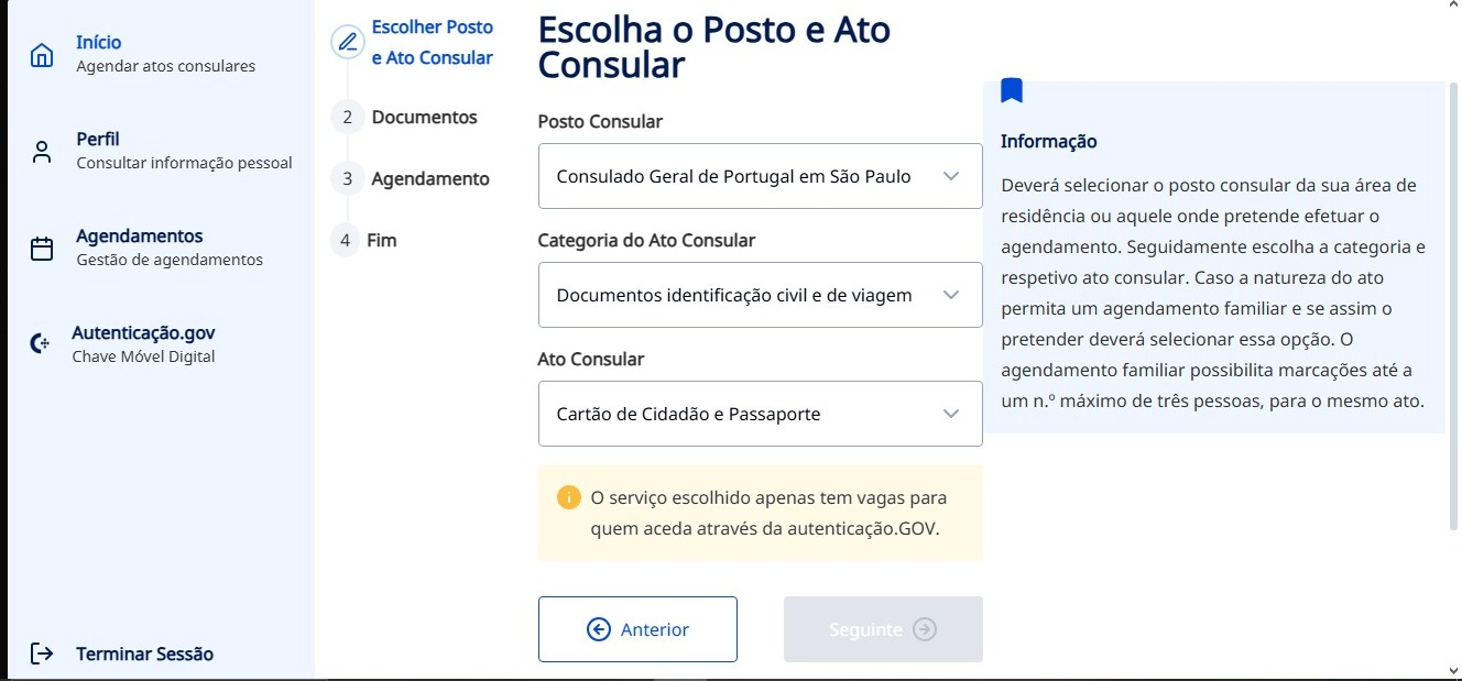 • Como faço para realizar agendamento no Consulado de São Paulo? O link para marcar horário disponível na página do consulado me redireciona para essa página, onde só consigo realizar o agendamento em posse da CMD, mas meu agendamento é para tirar a primeira via do Cartão de Cidadão.