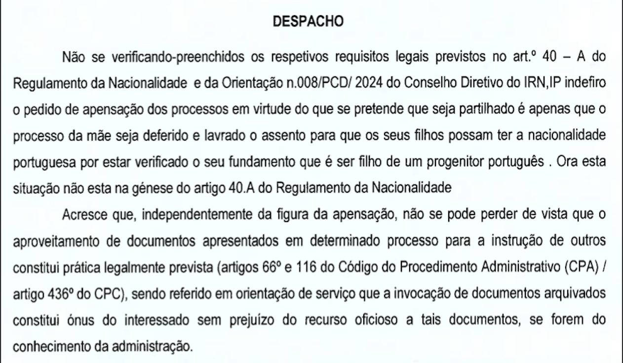 Minha nacionalidade portuguesa foi concluída agora no final de julho. Quando iniciei, enviei meus documentos junto com os da minha filha para tentar o processo de apensação, mas o pedido dela foi negado. Infelizmente, não foi permitido dar continuidade dessa forma, então terei que recomeçar o processo dela do zero, enviando todos os documentos novamente.